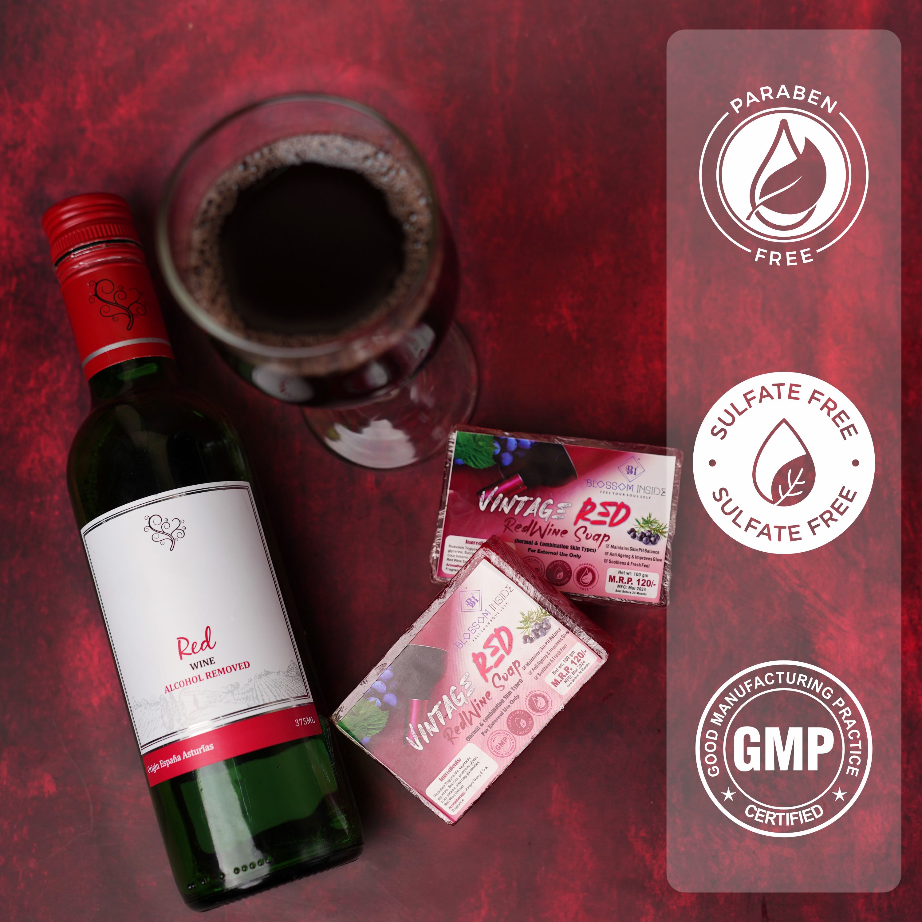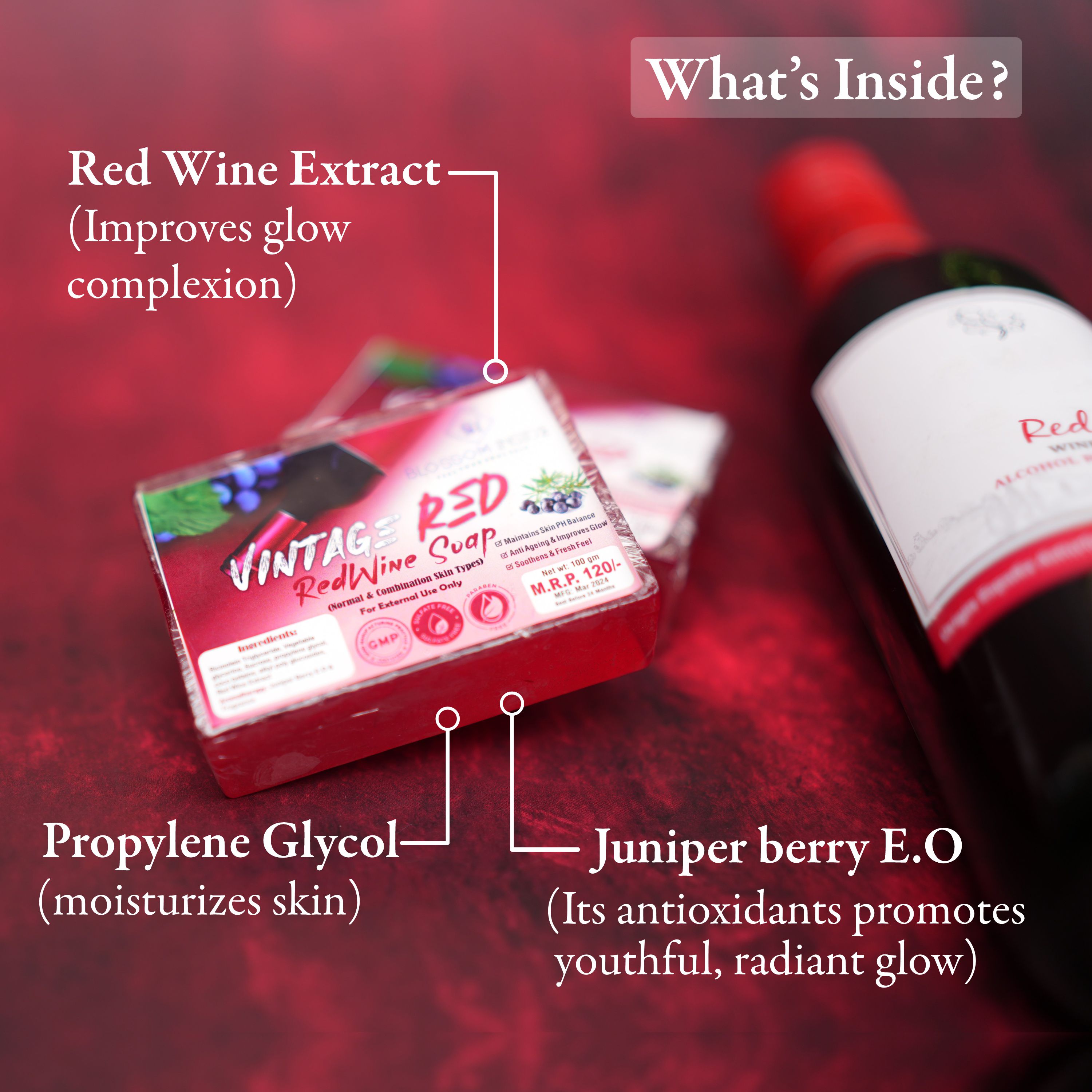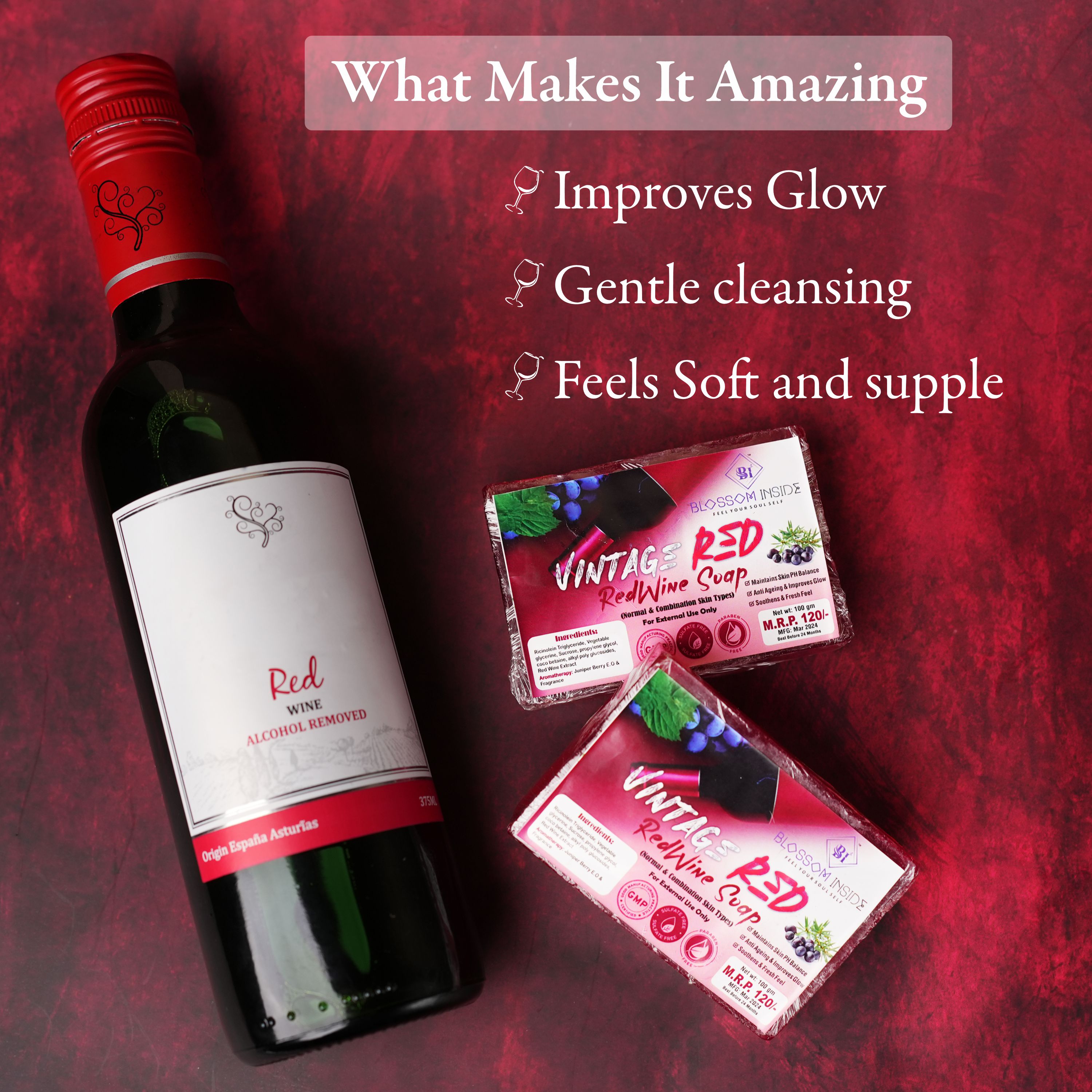 Redwine Extract: Red wine-infused soap harnesses antioxidants to combat free radicals, potentially reducing signs of aging, while its acids gently exfoliate, revealing brighter, healthier skin.